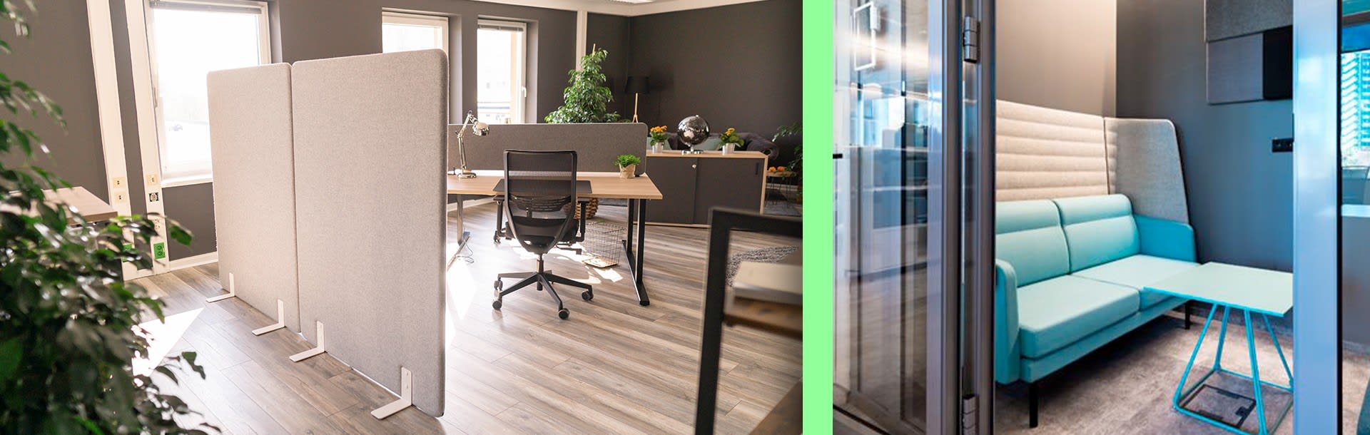- Acoustic solutions such as screens or room dividers are efficient in preventing sound propagation. As acoustic room dividers, they also ensure the absorption of sound.