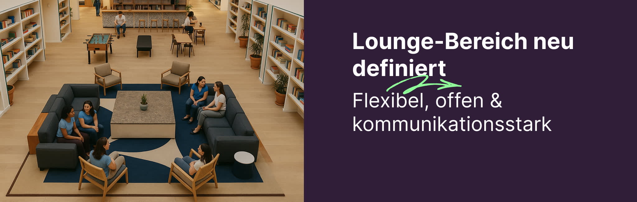 - Lounge areas are a central element of this development. They enable spontaneous conversations, creative breaks and strengthen the sense of togetherness within the company.